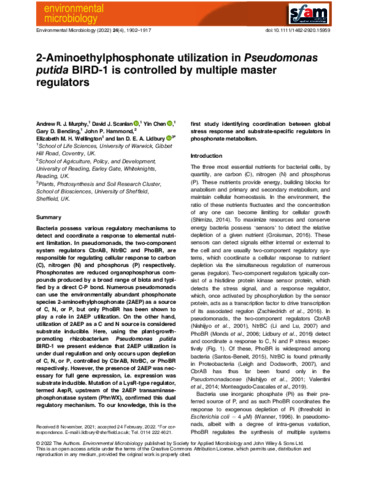 2‐Aminoethylphosphonate utilization in Pseudomonas putida BIRD ‐1 is controlled by multiple master regulators.