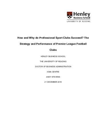 Stevens, A. (2019) How and Why do Professional Sport Clubs Succeed? The Strategy and Performance of Premier League Football Clubs. DBA thesis, Henley Business School, University of Reading. doi: 10.48683/1926.00105692