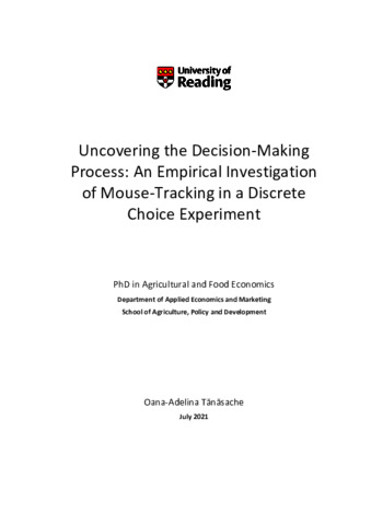 Tanasache, O.-A. (2021) Uncovering the Decision-Making Process: An Empirical Investigation of Mouse-Tracking in a Discrete Choice Experiment. PhD thesis, University of Reading. doi: 10.48683/1926.00105703