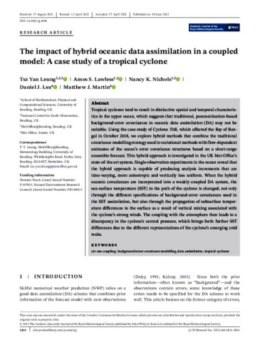 The impact of hybrid oceanic data assimilation in a coupled model: a case study of a tropical cyclone.