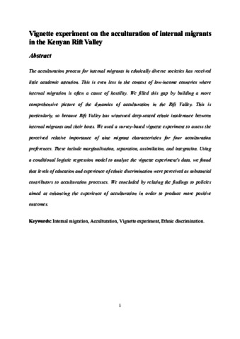 Vignette experiment on the acculturation of internal migrants in the Kenyan Rift Valley.