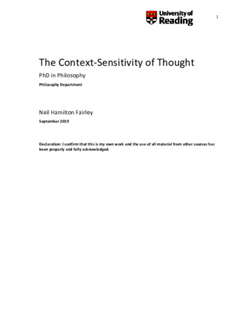 Hamilton Fairley, N. (2020) The Context-Sensitivity of Thought. PhD thesis, University of Reading. doi: 10.48683/1926.00105786
