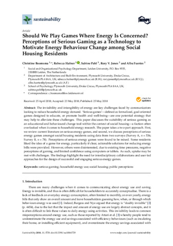 Should we play games where energy is concerned? Perceptions of serious gaming as a technology to motivate energy behaviour change among social housing residents.