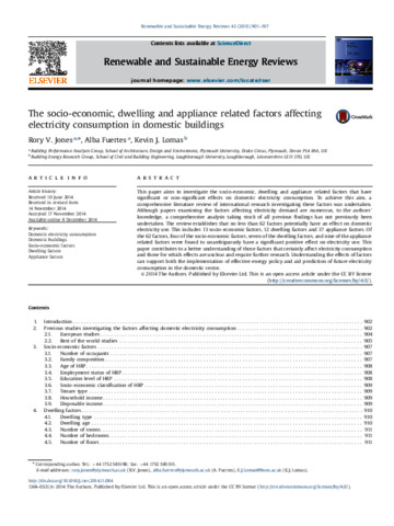 The socio-economic, dwelling and appliance related factors affecting electricity consumption in domestic buildings.