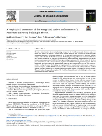 Korsavi, S. S., Jones, R. V. orcid id iconORCID: https://orcid.org/0000-0002-2716-9872, Bilverstone, P. A. and Fuertes, A. orcid id iconORCID: https://orcid.org/0000-0002-6224-1489 (2021) A longitudinal assessment of the energy and carbon performance of a Passivhaus university building in the UK. Journal of Building Engineering, 44. 103353. ISSN 23527102 doi: 10.1016/j.jobe.2021.103353
