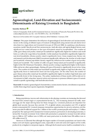 Agroecological, land-elevation and socioeconomic determinants of raising livestock in Bangladesh.