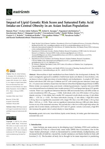 Impact of lipid genetic risk score and saturated fatty acid intake on central obesity in an Asian Indian population.