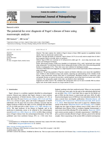 The potential for over diagnosis of Paget’s Disease of bone using macroscopic analysis.