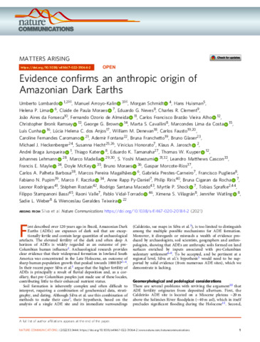 First described over 120 years ago in Brazil, Amazonian Dark Earths (ADEs) are expanses of dark soil that are exceptionally fertile and contain large quantities of archaeological artefacts. The elevated fertility of the dark and often deep A horizon of ADEs is widely regarded as an outcome of preColumbian human influence. Archaeological research provides clear evidence that their widespread formation in lowland South America was concentrated in the Late Holocene, an outcome of sharp human population growth that peaked towards 1000 BP. In their recent paper Silva et al. argue that the higher fertility of ADEs is principally a result of fluvial deposition and, as a corollary, that pre-Columbian peoples just made use of these locales, contributing little to their enhanced nutrient status. Soil formation is inherently complex and often difficult to interpret, requiring a combination of geochemical data, stratigraphy, and dating. Although Silva et al. use this combination of methods to make their case, their hypothesis, based on the analysis of a single ADE site and its immediate surroundings (Caldeirão, see maps in Silva et al.), is too limited to distinguish among the multiple possible mechanisms for ADE formation. Moreover, it disregards or misreads a wealth of evidence produced by archaeologists, soil scientists, geographers and anthropologists, showing that ADEs are anthropic soils formed on land surfaces enriched by inputs associated with pre-Columbian sedentary settlement. To be accepted, and be pertinent at a regional level, Silva et al.’s hypothesis would need to be supported by solid evidence (from numerous ADE sites), which we demonstrate is lacking.