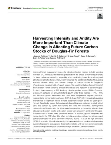 Harvesting intensity and aridity are more important than climate change in affecting future carbon stocks of Douglas-fir forests
