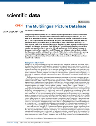 22. Duñabeitia, J. A. MultiPic: Multilingual Picture Dataset. figshare. https://doi.org/10.6084/m9.figshare.19328939.v5 (2022).