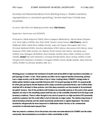 Summary and Recommendations from Working Group 1: model uncertainty representations in convection-permitting / shorter lead-time / limited-area ensembles.