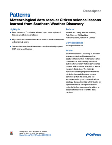 Meteorological data rescue: citizen science lessons learned from Southern Weather Discovery.