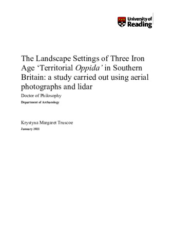 Truscoe, K. M. (2021) The landscape settings of three Iron Age ‘Territorial Oppida’in Southern Britain: a study carried out using aerial photographs and lidar. PhD thesis, University of Reading. doi: 10.48683/1926.00106246