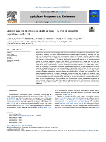 Reeves, L. A., Garratt, M. P. D. orcid id iconORCID: https://orcid.org/0000-0002-0196-6013, Fountain, M. T. and Senapathi, D. orcid id iconORCID: https://orcid.org/0000-0002-8883-1583 (2022) Climate induced phenological shifts in pears – a crop of economic importance in the UK. Agriculture, Ecosystems and Environment, 338. 108109. ISSN 0167-8809 doi: 10.1016/j.agee.2022.108109
