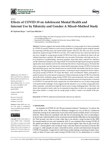 Effects of COVID-19 on adolescent mental health and internet use by ethnicity and gender: a mixed–method study.