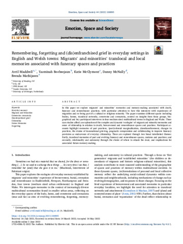 Remembering, forgetting and (dis)enfranchised grief in everyday settings in English and Welsh towns: migrants’ and minorities’ translocal and local memories associated with funerary spaces and practices.
