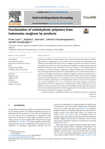 Fractionation of carbohydrate polymers from Indonesian sorghum by-products.