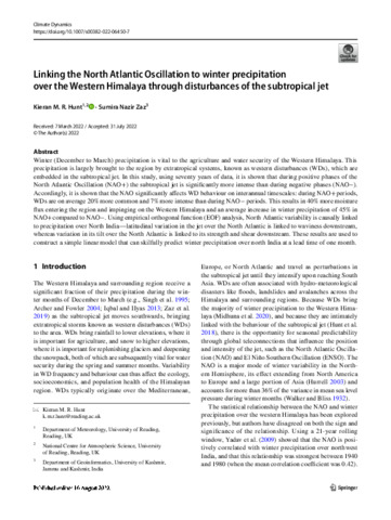 Linking the North Atlantic Oscillation to winter precipitation over the Western Himalaya through disturbances of the subtropical jet.