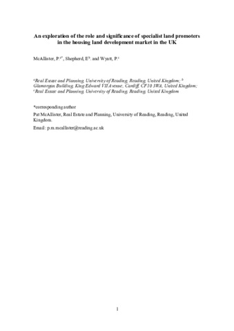 An exploration of the role and significance of specialist land promoters in the housing land development market in the UK.