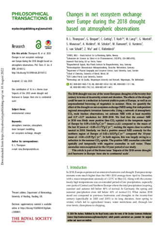 Changes in net ecosystem exchange over Europe during the 2018 drought based on atmospheric observations.