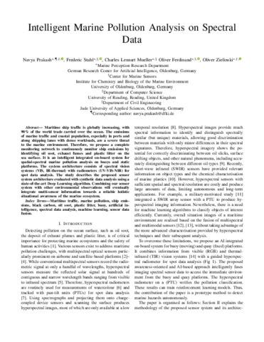 Prakash, N., Stahl, F. orcid id iconORCID: https://orcid.org/0000-0002-4860-0203, Mueller, C. L., Ferdinand, O. and Zielinski, O. (2022) Intelligent Marine Pollution Analysis on Spectral Data. In: OCEANS 2021, 20-23 SEPT 2021, San Diego, Porto, pp. 1-6. doi: 10.23919/OCEANS44145.2021.9706056
