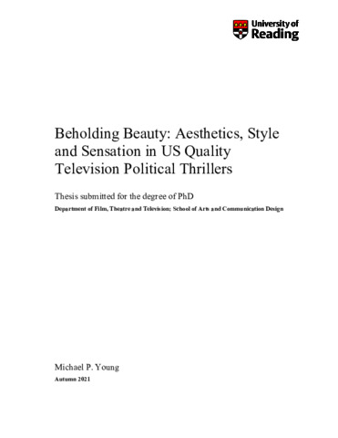 Young, M. (2021) Beholding Beauty: Aesthetics, Style and Sensation in US Quality Television Political Thrillers. PhD thesis, University of Reading. doi: 10.48683/1926.00106867