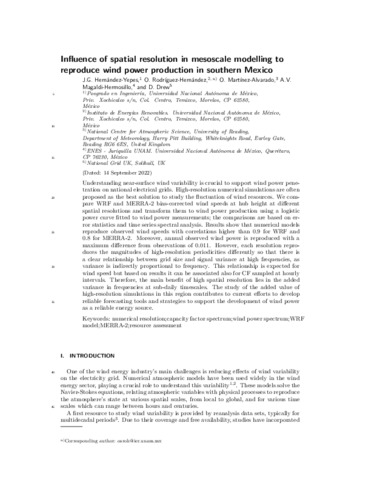 Influence of spatial resolution in mesoscale modeling to reproduce wind power production in southern Mexico.