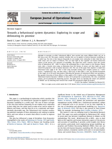 Towards a behavioural system dynamics: exploring its scope and delineating its promise.