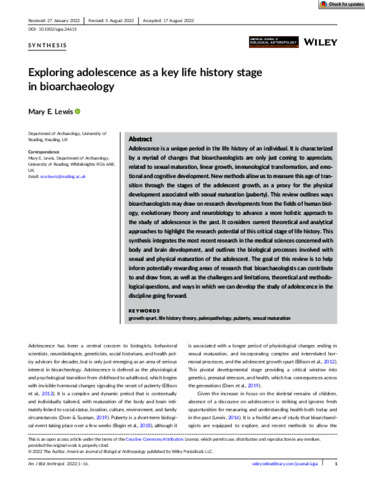 Adolescence is a unique period in the life history of an individual. It is characterised by a myriad of changes that bioarchaeologists are only just coming to appreciate, related to sexual maturation, linear growth, immunological transformation, and emotional and cognitive development. New methods allow us to measure this age of transition through the stages of the adolescent growth, as a proxy for the physical development associated with sexual maturation (puberty). This review outlines ways bioarchaeologists may draw on research developments from the fields of human biology, evolutionary theory and neurobiology to advance a more holistic approach to the study of adolescence in the past. It considers current theoretical and analytical approaches to highlight the research potential of this critical stage of life history. This synthesis integrates the most recent research in the medical sciences concerned with body and brain development, and outlines the biological processes involved with sexual and physical maturation of the adolescent. The goal of this review is to help inform potentially rewarding areas of research that bioarchaeologists can contribute to and draw from, as well as the challenges and limitations, theoretical and methodological questions, and ways in which we can develop the study of adolescents in the discipline going forward.