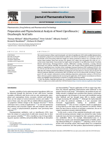 Preparation and physiochemical analysis of novel ciprofloxacin / dicarboxylic acid salts.