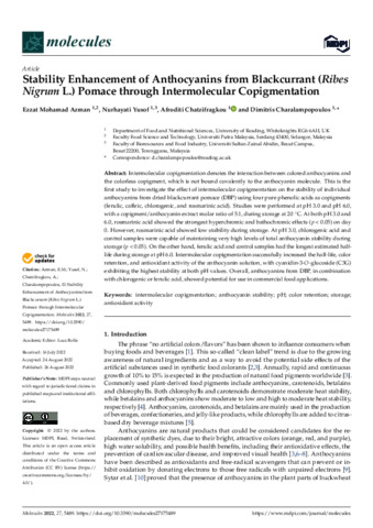Stability enhancement of anthocyanins from blackcurrant (Ribes nigrum L.) pomace through intermolecular copigmentation.