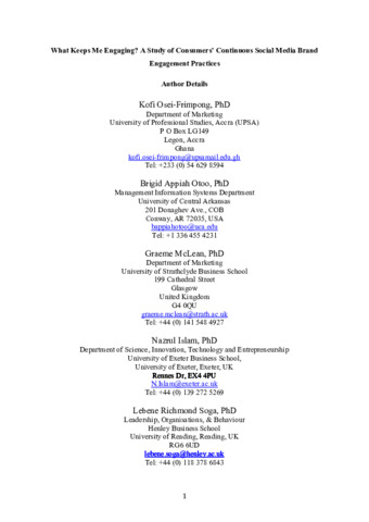What keeps me engaging? A study of consumers’ continuous social media brand engagement practices.