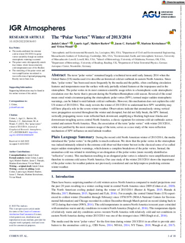 The term “polar vortex” remained largely a technical term until early January 2014 when the United States (US) media used it to describe an historical cold air outbreak in eastern North America. Since then, “polar vortex” has been used more frequently by the media and the public, often conflating circulation features and temperatures near the surface with only partially related features at the tropopause and in the stratosphere. The polar vortex in its most common scientific usage refers to a hemispheric-scale stratospheric circulation over the Arctic that is present during the Northern Hemisphere cold season. Reversal of the zonal mean zonal winds circumnavigating the stratospheric polar vortex (SPV), termed major sudden stratospheric warmings, can be linked to mid-latitude cold air outbreaks. However, this mechanism does not explain the cold US winter of 2013/2014. This study revisits the winter of 2013/2014 to understand how SPV variability may still have played a role in the severe winter weather. Observations indicate that anomalously strong vertical wave propagation occurred throughout the winter and disrupted, but did not fully break, the SPV. Instead, vertically propagating waves were reflected back downward, amplifying a blocking high near Alaska and downstream troughing across central North America, a classic signature for extreme cold air outbreaks across central and eastern North America. Thus, the association of the term “polar vortex” with winter 2013/2014, while not justified by the most common usage of the term, serves as a case study of the wave-reflection mechanism of SPV influence on mid-latitude weather.