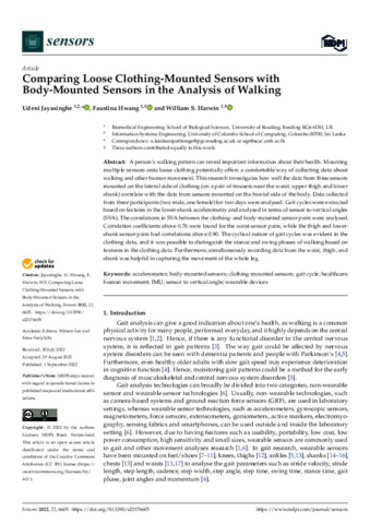 Comparing loose clothing-mounted sensors with body-mounted sensors in the analysis of walking.