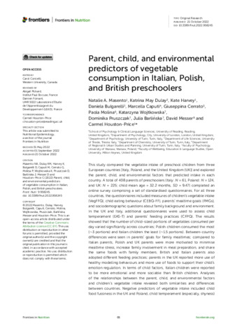 Parent, child and environmental predictors of vegetable consumption in Italian, Polish & UK preschoolers.
