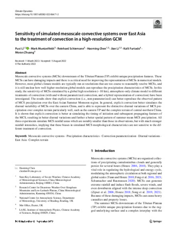 Sensitivity of simulated mesoscale convective systems over East Asia to the treatment of convection in a high-resolution GCM.