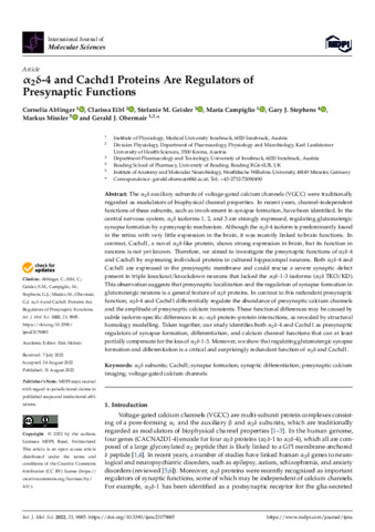 11. Geisler, S.; Schöpf, C.L.; Stanika, R.; Kalb, M.; Campiglio, M.; Repetto, D.; Traxler, L.; Missler, M.; Obermair, G.J. Presynaptic