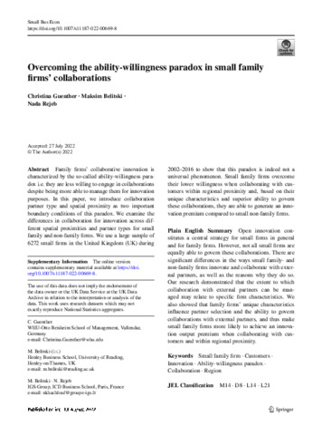Overcoming the ability-willingness paradox in small family firms’ collaborations