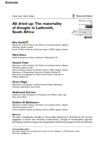 All dried up: the materiality of drought in Ladismith, South Africa.