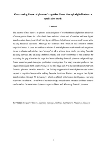 Overcoming financial planners’ cognitive biases through digitalization: a qualitative study