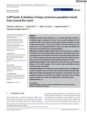 CaPTrends: a database of large carnivoran population trends from around the world.