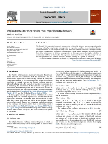 Kunkler, M. (2022) Implied betas for the Frankel–Wei regression framework. Economics Letters, 218. 110758. ISSN 1873-7374 doi: 10.1016/j.econlet.2022.110758