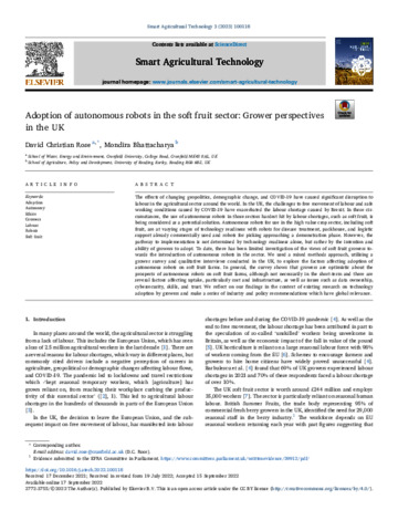 Adoption of autonomous robots in the soft fruit sector: grower perspectives in the UK.