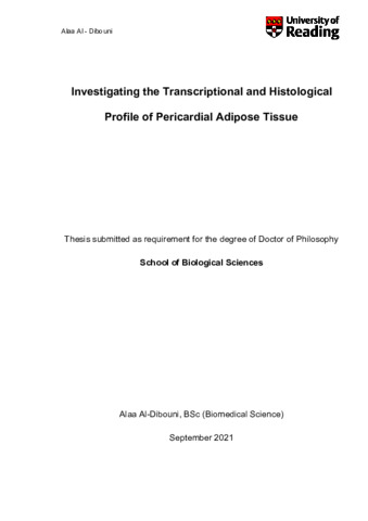 Al-Dibouni, A. (2021) Investigating the transcriptional and histological profile of pericardial adipose tissue. PhD thesis, University of Reading. doi: 10.48683/1926.00107503