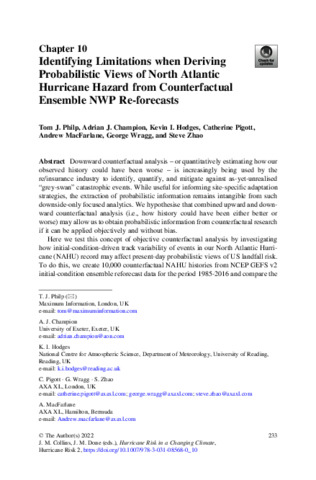 Identifying limitations when deriving probabilistic views of North Atlantic hurricane hazard from counterfactual ensemble NWP re-forecasts.