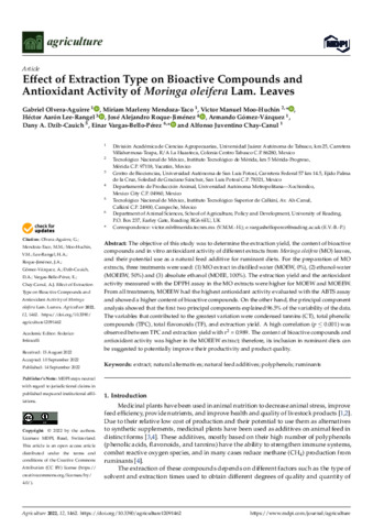 Effect of extraction type on bioactive compounds and antioxidant activity of Moringa oleifera Lam. leaves.