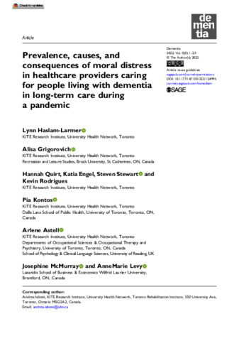 Prevalence, causes, and consequences of moral distress in healthcare providers caring for people living with dementia in long-term care during a pandemic.
