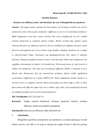 Resource use efficiency under self-selectivity: the case of Bangladeshi rice producers.