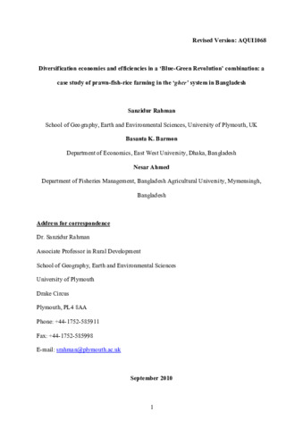 Diversification economies and efficiencies in a ‘blue-green revolution’ combination: a case study of prawn-carp-rice farming in the ‘gher’ system in Bangladesh.